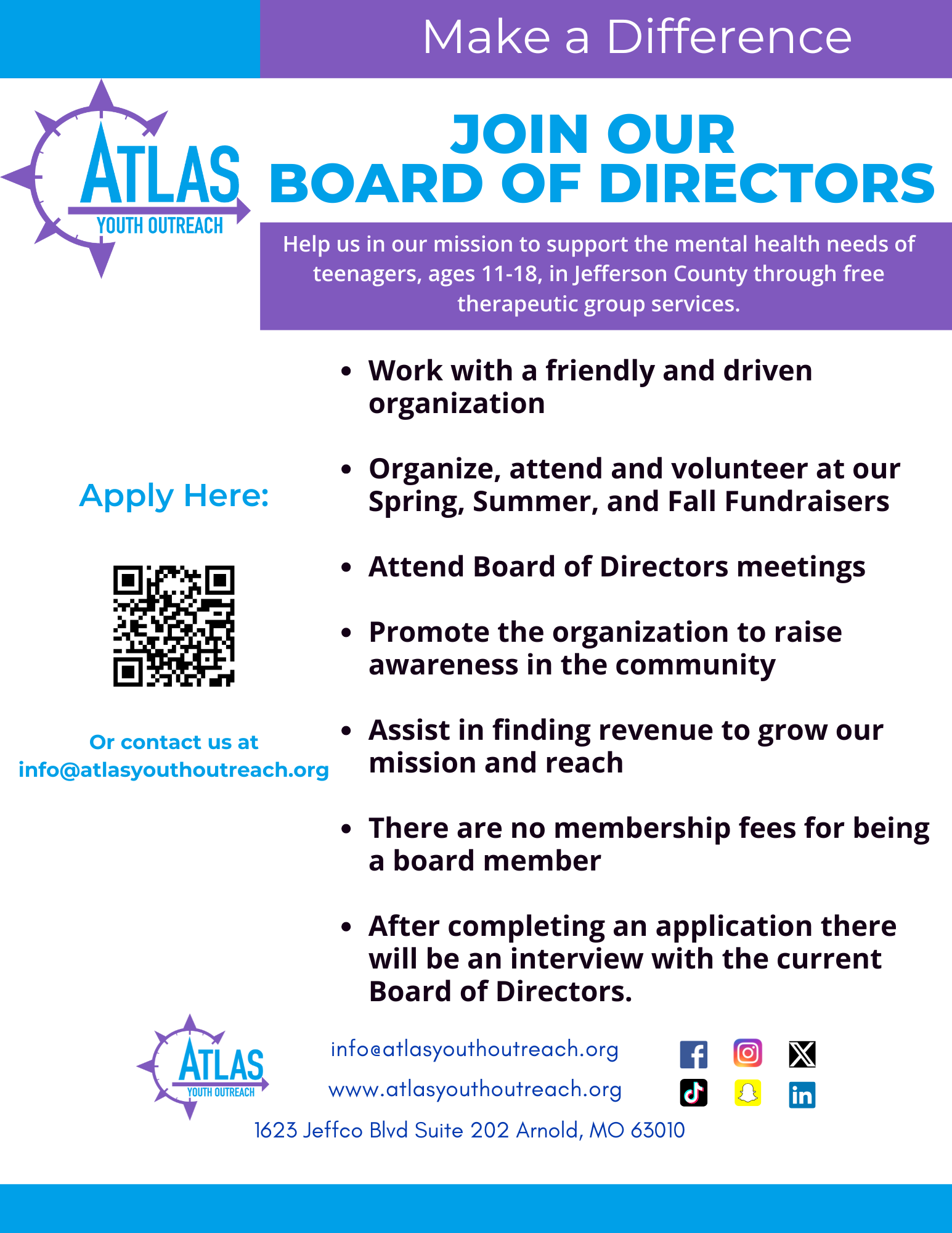 Atlas is seeking motivated individuals who are interested in making a difference in the lives of teens.